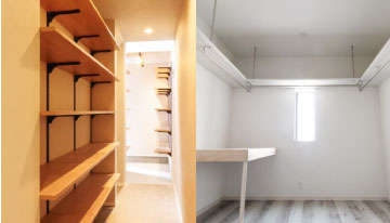 二世帯で住むとなると衣服や物が2倍となります。その為、現状の住まいの収納にあわせて、ウォークインクローゼットや新しい収納スペースの確保で二世帯でも綺麗を保てる住まいを可能にします。
